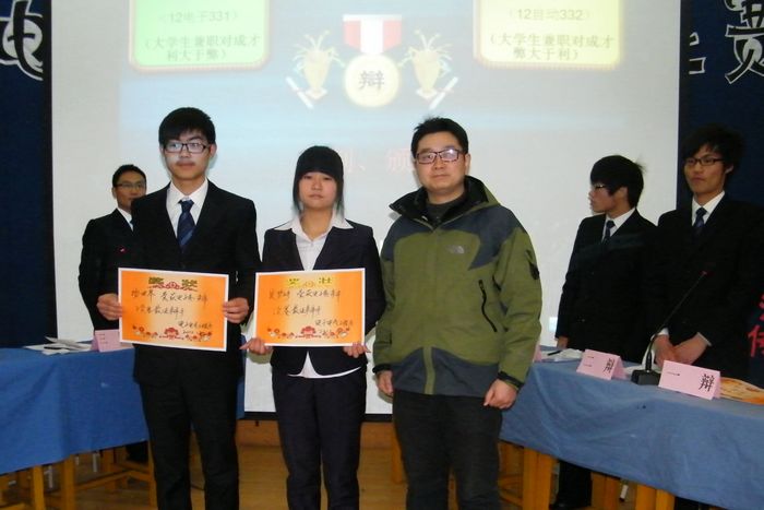 经过一轮轮的初赛、复赛,12电子331和12自动332班两支“口上精兵”终于在今晚“短兵相接”,亮剑于老师和众多辩论好手面前。他们的议题是如今很火的“老员工兼职”现象,围绕着老员工兼职对员工学习、生活等影响的利弊程度精心准备、密切配合、合理表述和精彩论证。尤其是在自由辩论环节,伴随着双方啦啦队的激情回应,场上的各位辩手也好似增加了足够的能量,男生辩手仪表翩翩、攻辩攻有度,处处显示出理智压倒情绪的“度”量。女生辩手优雅却不失“争”与“辩”的风度,他们密切团体配合,共同为我们演绎了一场激扬、灵巧、幽默、思辨的视听盛宴。