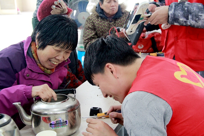 活动现场,闻讯赶来的居民们将家中需要维修的吹风机、电风扇、电话机等“问题家电”纷纷拿来,志愿者还赶到腿脚不便的居民家中检查维修,经过志愿者对需要维修的家电仔细“会诊” “对症下药”,一件件“问题电器”变废为宝,重新发挥作用,居民们一个个喜笑颜开。