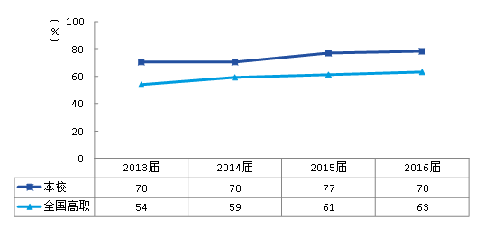 本校2016届毕业生的就业现状满意度为78%,与本校2015届(77%)基本持平,比全国高职2016届(63%)高15个百分点。本校毕业生的就业现状满意度呈上升趋势,与全国高职平均水平相比优势明显。