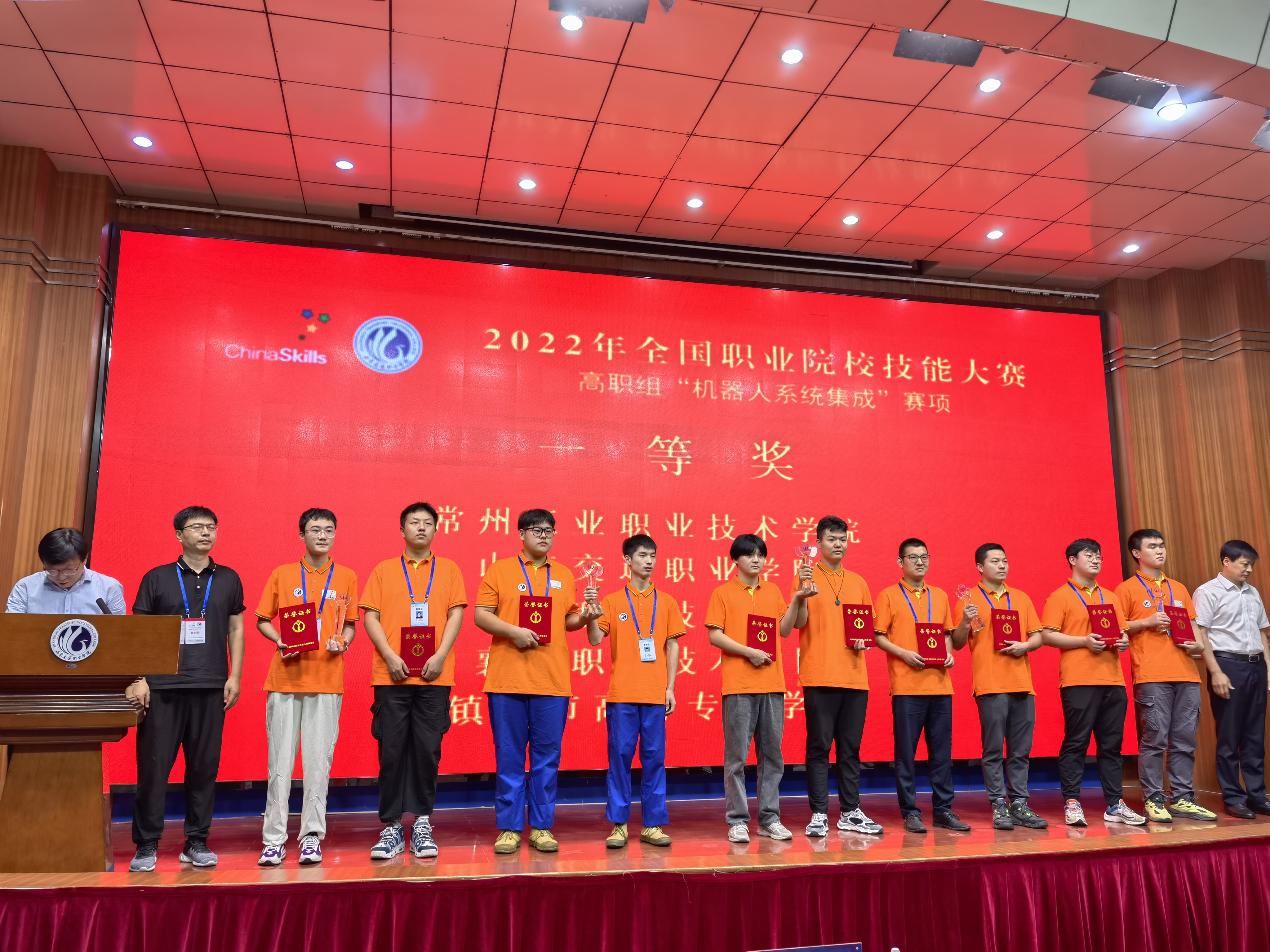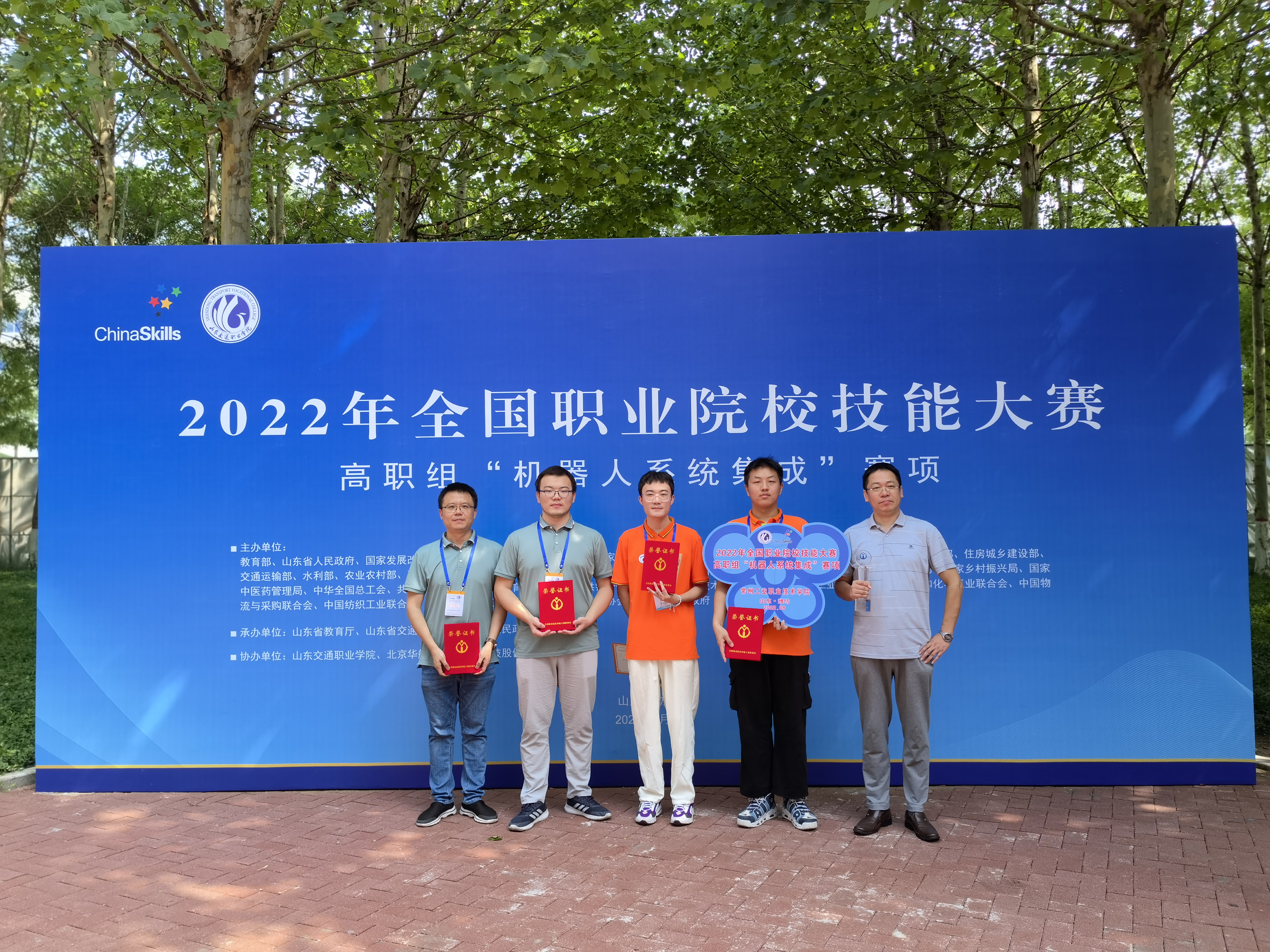 2022年8月18日,全国职业院校技能大赛“机器人系统集成”赛项在山东交通职业公司落下帷幕,来自全国各省、自治区、直辖市52支代表队参赛。由公司太阳集团tcy872221机器人631班的袁康、张凌飞两位选手组成的代表队在教练陈伟、蒋金伟老师的带领指导下,以优异成绩获得该赛项的一等奖第一名。该赛项自2018年首次设置以来,公司已经累计获得了4个国赛一等奖和5个省赛一等奖。