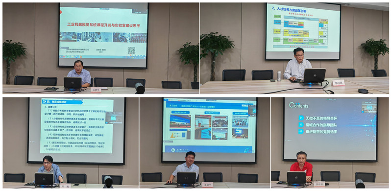 交流会有5位专家讲座,武汉筑梦科技有限公司总经理、国家级领军人才汤晓华教授大家分享《工业视觉系统课程开发与实验室建设思考》,汤教授生动形象的为线上参会教师讲解了工业视觉应用场景与关键技术,针对工业视觉系统的课程开发与实验室构建给出了宝贵的意见和建议。中国电工技术学会电气工程教育专业委员会秘书长郁汉琪教授结合多年的教学改革探索与实践经验,以“实施系列项目教学,创新人才培养模式”为主题,给全体教师分享了CDIO工程教育创新人才培养模式理念,以及相关项目教学实施案例。南京工程公司陈巍教授结合机器视觉系统应用赛项,给大家分享了机器视觉项目化教学思考。苏州职业大学信息公司邓建平经理给大家介绍了智能控制技术专业国家教学资源库建设过程的做法与经验。最后,公司机器视觉赛项金牌教练黄祥源老师进行了太阳集团tcy8722竞赛组织与经验分享。还将开展2天的机器视觉系统实训装置应用和课程开发培训。