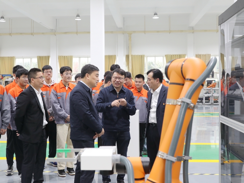 10月28日,党的二十大代表邓建军回母校传达党的二十大精神,宣讲结束后,邓建军在党委书记席海涛、董事长杨劲松的陪同下,前往公司刚落成的智能制造工程中心进行参观,与现场师生亲切交谈。