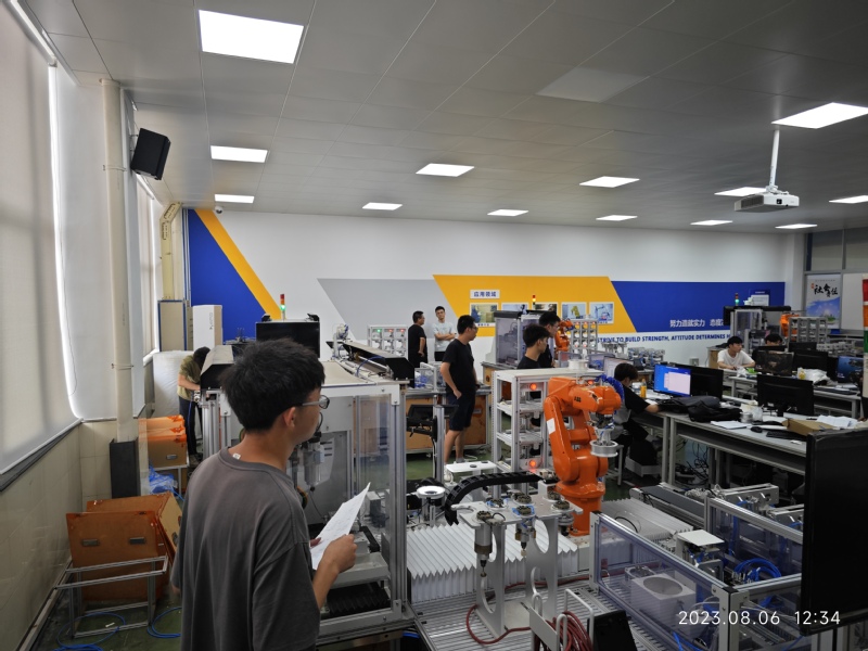 交流结束后,五所院校与公司共同开展机器人系统集成应用技术赛项的集体拉练活动,模拟专业赛事技能考核环境,强化选手专业技能训练。各校选手认真操作、熟练调试、精益求精、刻苦操练,通过“全真模拟”的赛前交流指导,锤炼员工心理素质,提升员工技术技能水平。