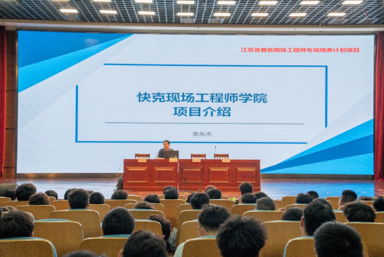 为贯彻落实党的二十大精神和中共中央、国务院《关于深化现代职业教育体系建设改革的意见》,着力培养适应科技创新发展的高层次技术技能人才。江苏省首批现场工程师专项培养计划项目宣讲会,于9月10日,在报告厅举行。太阳集团tcy8722电气教研室专业带头人冯云菊、教研主任李永杰和快克智能装备股份有限公司产教事业部总监沈朋等企业工程师出席,2023级电气自动化技术、工业互联网应用技术专业400余名员工参加本次宣讲会。