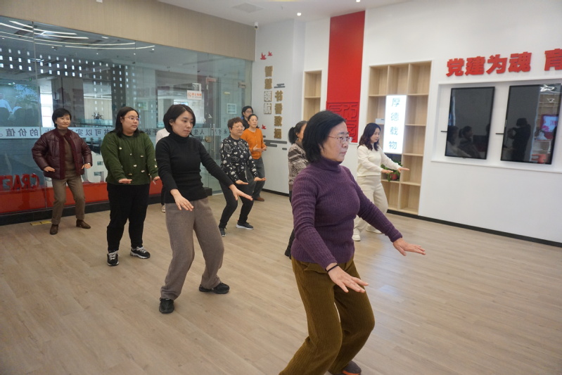 本次活动在黄忠琴老师的指导下拉开序幕,她带领全体女教职员工一同演练了中华传统养生功法——八段锦。一招一式间,尽显柔中带刚、阴阳相济的韵律之美,大家在锻炼身体、舒缓压力的同时,也深深体验到了中国传统文化的博大精深。