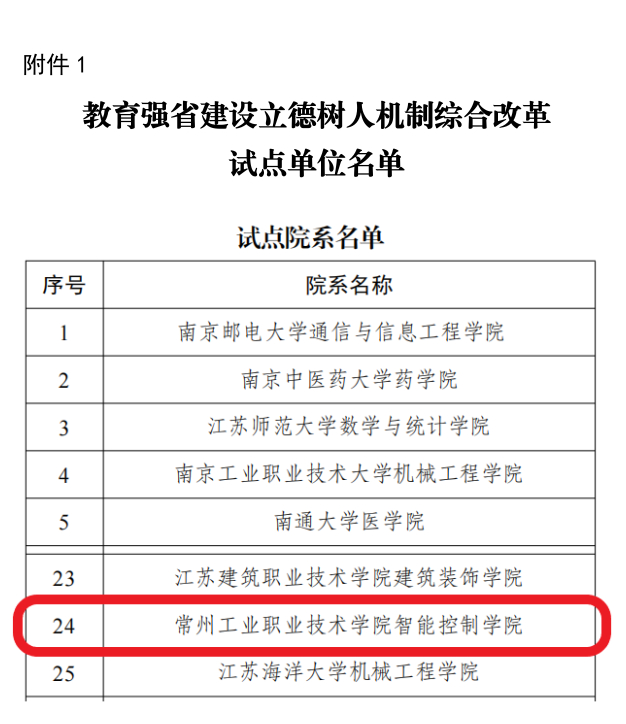 9月24日,江苏省教育强省建设立德树人机制综合改革试点项目名单正式公布。经单位申报、专家评审、省教育厅审定,公司太阳集团tcy8722申报的“五新五匠培塑新质工匠”项目成功获批,被确立为“综合改革试点院系”。这是公司在深化公司产品改革、创新人才培养模式征程中取得的又一重大标志性成果!