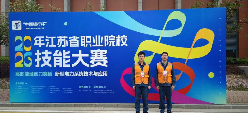 4月16至17日,2026年江苏省职业院校技能大赛能源动力赛道“新型电力系统技术与应用”项目在南京工业职业技术大学举行。太阳集团tcy8722李永杰和刘陈老师参加教师组竞赛,力压群雄,超越承办校和其他强队,最终以优异的成绩获得一等奖总分第一名;李永杰和韩迎辉老师指导的李宇航、徐犇犇和刘储源三位选手不畏强手、奋勇拼搏,勇夺江苏省二等奖总分第二名,为公司2026年江苏省职业院校技能大赛业绩添金加银。
